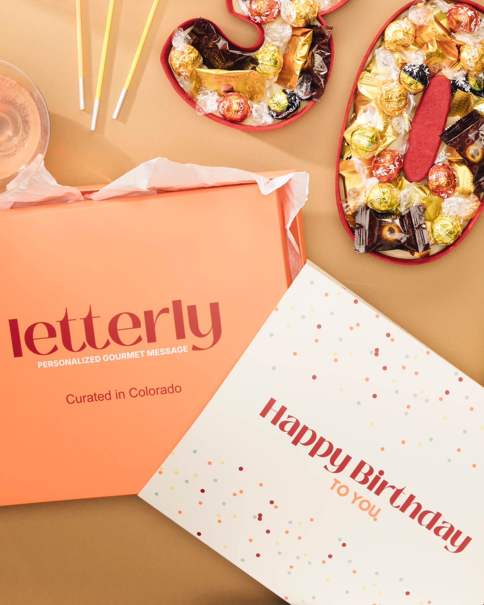 Choose from our curated selection of gourmet messages or celebratory numbers.