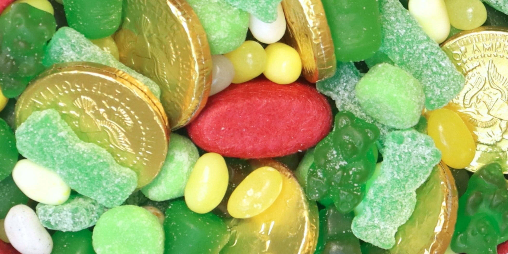 Fillings: Festive green and gold candy, gourmet chocolates, farmers market dried fruits, and mixed nuts