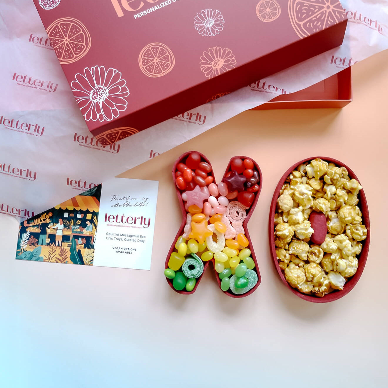 Make your message unforgettable with our LOVE gourmet gift box—a modern expression of care, celebration, sympathy, or romance. Each letter is crafted into a sleek, eco-friendly tray and filled with premium treats like gourmet candy, chocolates, or dried fruits and nuts.