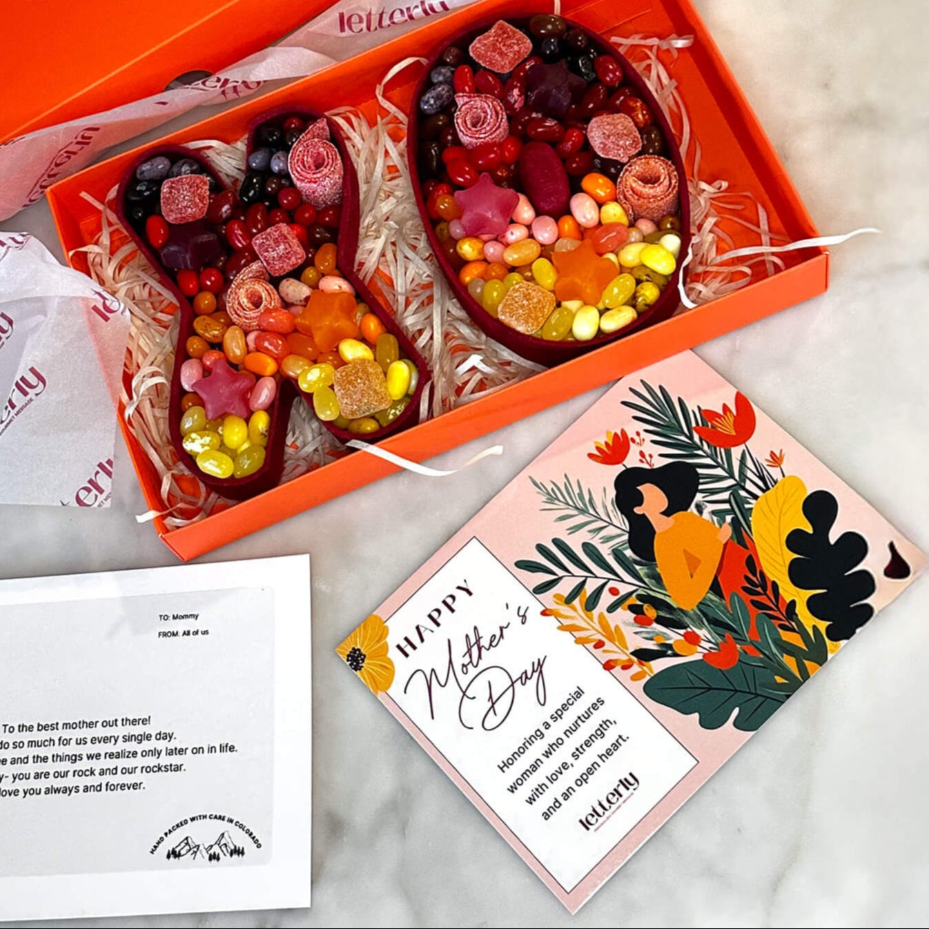 Your gift will be beautifully packaged and shipped in eco-friendly, custom-designed boxes to ensure it arrives safely. Letterly does not require a signature for delivery, but we encourage you to make sure someone is available to receive the package, especially if it contains perishable items. The decision to leave a package at the address is at the discretion of the delivery carrier.
