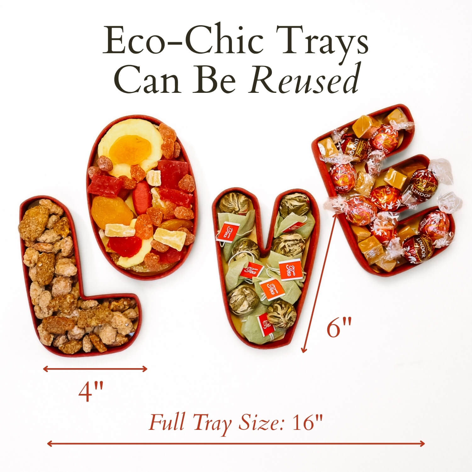 - Includes four trays spelling LOVE, beautifully arranged and ready to gift