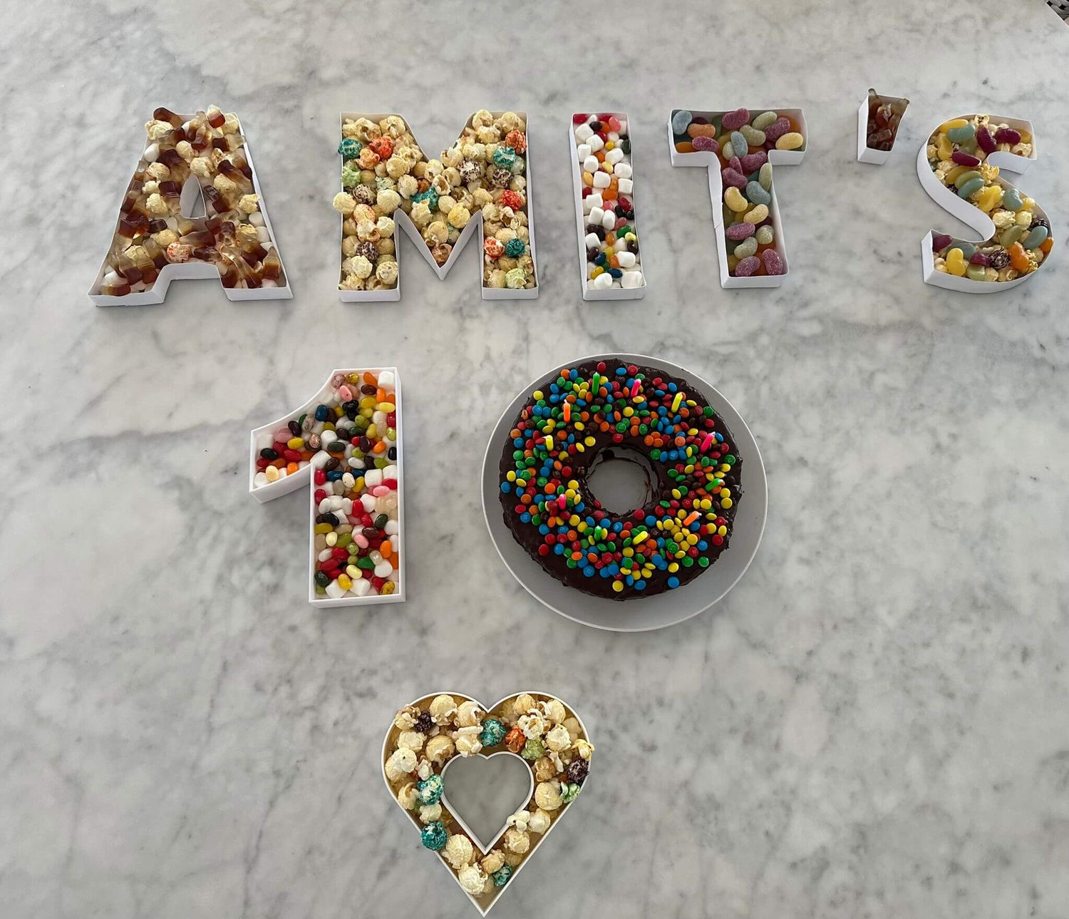 When my son turned 10 I set up a table with letters and numbers trays full of candy and everyone's reaction was so awesome I started thinking that I wish I could send something similar to my friends and family in other states.