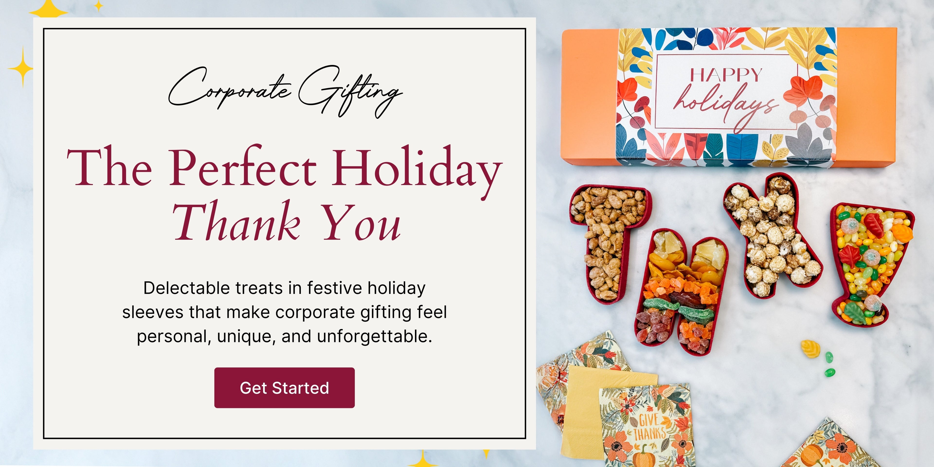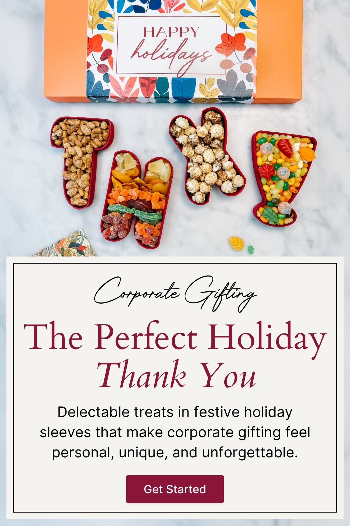 Our eco-chic trays now come with festive holiday sleeves — so your team, clients, and partners unwrap something that delights (not bores). Thoughtful, personal, and oh-so tasty.